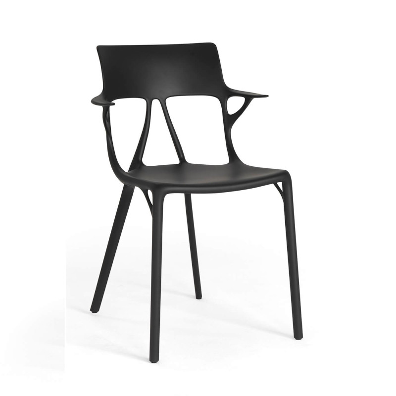 A.I. è una sedia realizzata utilizzando per la prima volta un materiale riciclato in cui qualità estetica e requisiti strutturali restano immutati e si coniugano al design generativo. A.I. fa parte della famiglia di prodotti concepita dall’Intelligenza Artificiale che ha risposto agli imput ricevuti dal designer Philippe Starck.