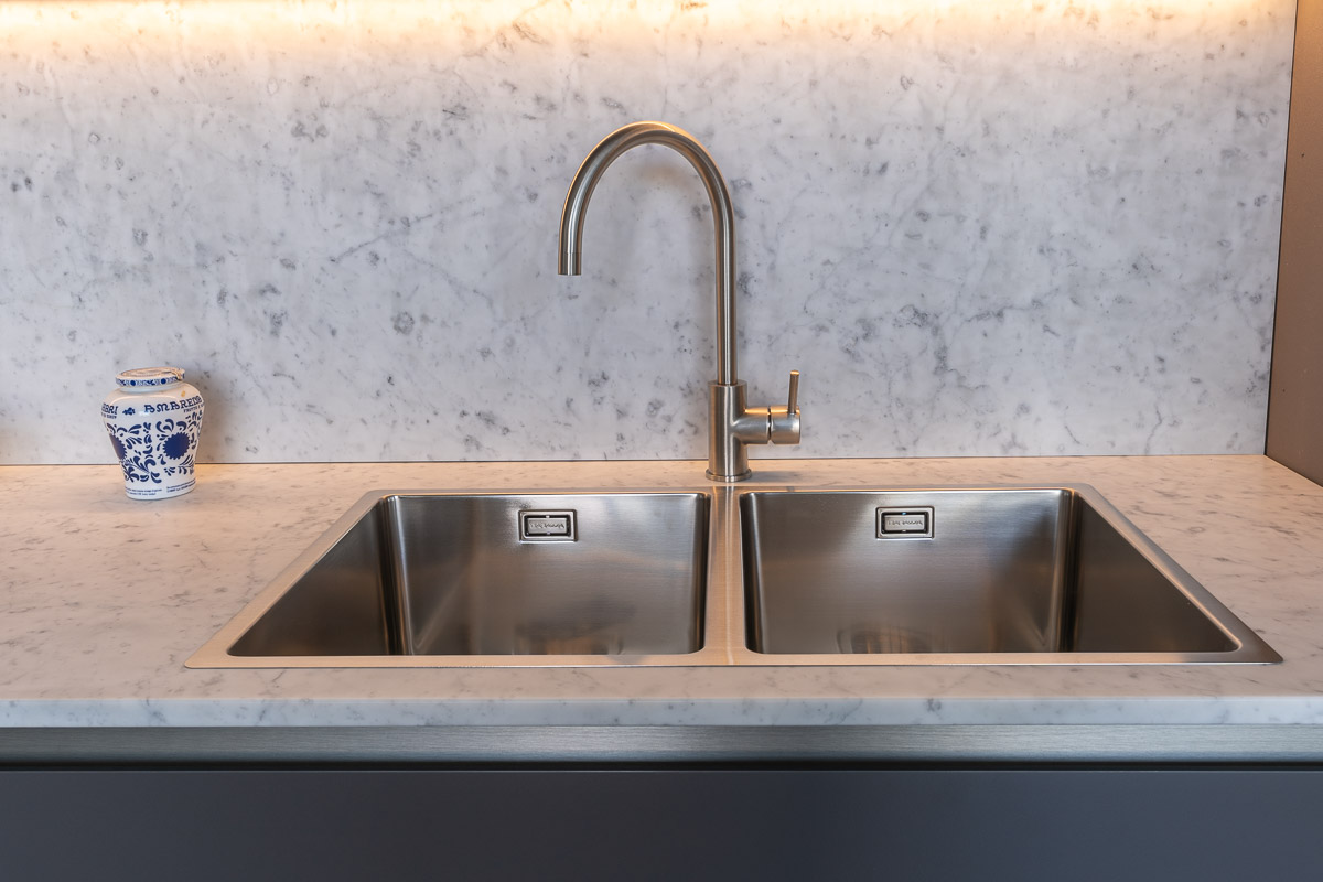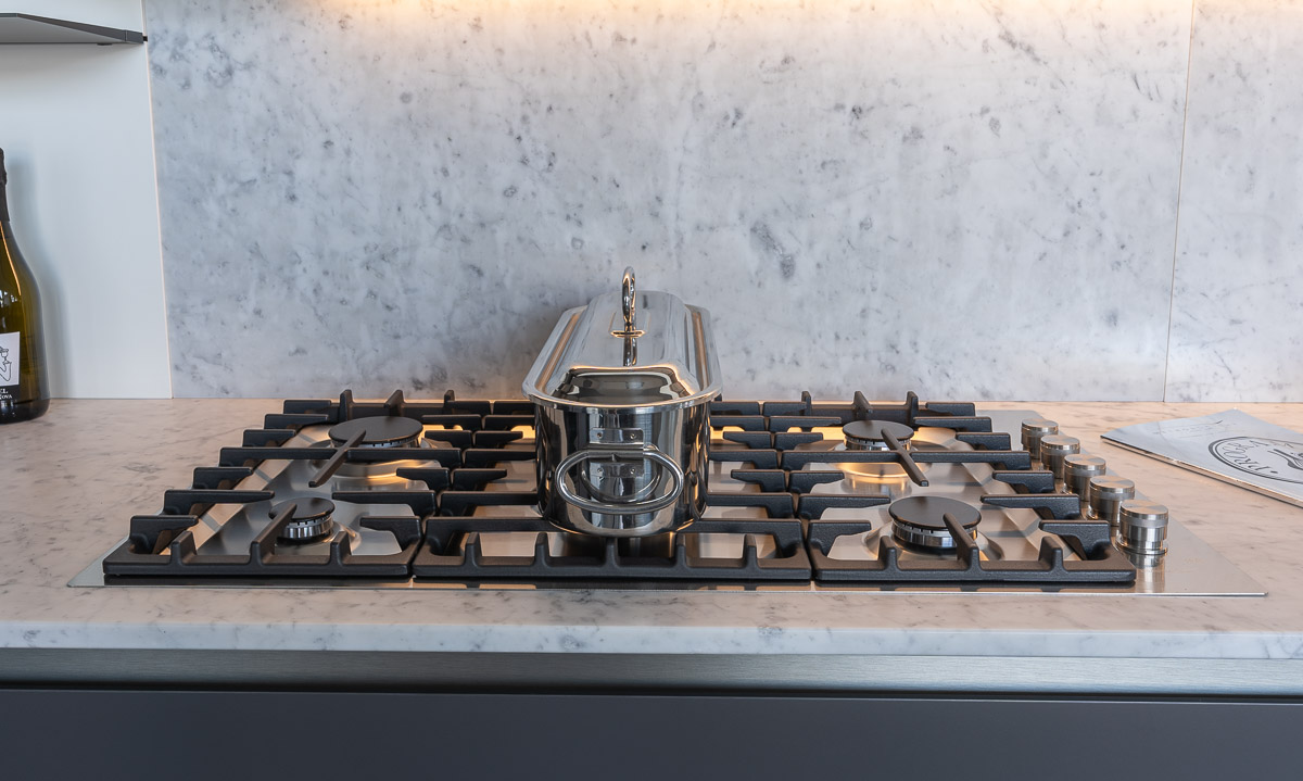 - Elettrodomestici: lavello e piano cottura cinque fuochi Barazza, lavastoviglie Miele.